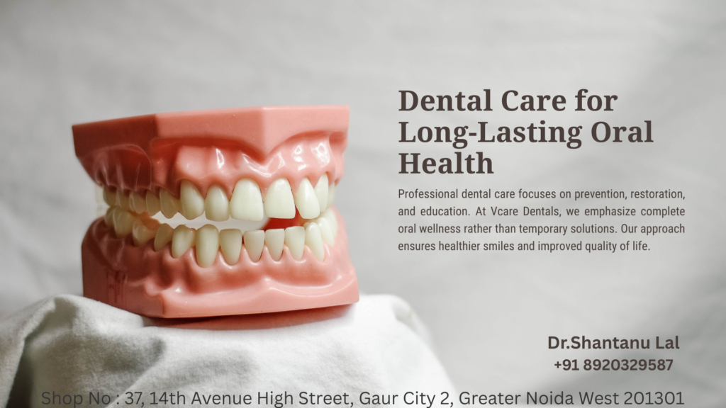 Professional dental care focuses on prevention, restoration, and education. At Vcare Dentals, we emphasize complete oral wellness rather than temporary solutions. Our approach ensures healthier smiles and improved quality of life.